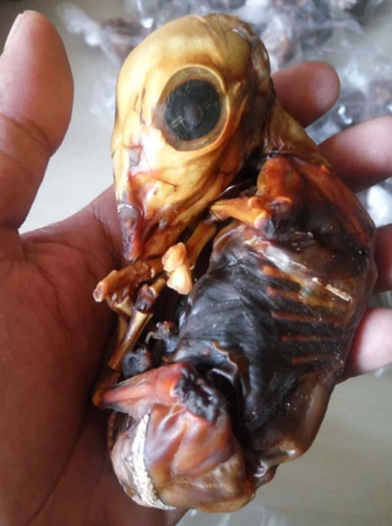 Bersama pelaku diamankan janin diduga Kijang sebanyak 2 ekor, sebilah senjata tajam dan sebuah sepeda motor. Pengembangan dilakukan dengan menggeledah rumah tersangka, dan didapati seekor janin Kijang dan bekas bungkus paket ekspedisi yang beralamat asal Madura.