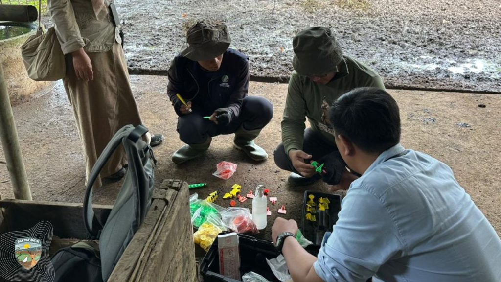 Kegiatan penandaan ini bukan pekerjaan spontan. Koordinasi sudah dilakukan sejak November 2025, menyiapkan kandang jepit, peralatan, hingga alur kerja yang aman. Bahkan di tengah hujan, setiap tahap tetap mengikuti prosedur yang sama, karena dalam konservasi, ketelitian tidak boleh luntur oleh cuaca.