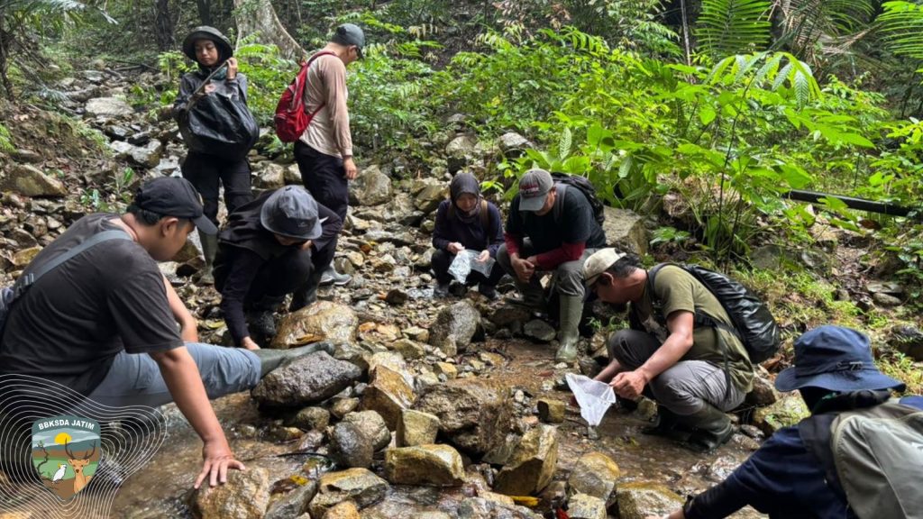 Selama empat hari, hingga tanggal 27 Oktober 2025, tim bergerak dari satu aliran air ke aliran lainnya, menelusuri sumber-sumber air yang menjadi nadi kehidupan ekosistem pulau. Di bawah pengawasan petugas Seksi KSDA Wilayah III Surabaya, peneliti Rena Tri Hernawati, S.Si., M.Si., dari Pusat Riset Biosistematika dan Evolusi – BRIN, melakukan pengumpulan spesimen Krustasea air tawar untuk kajian taksonomi dan analisis DNA barcoding.