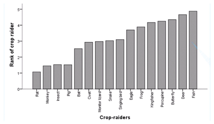 Peringkat jenis satwa yang makan tanaman pertanian (Zahra et al., 2015)[/caption]