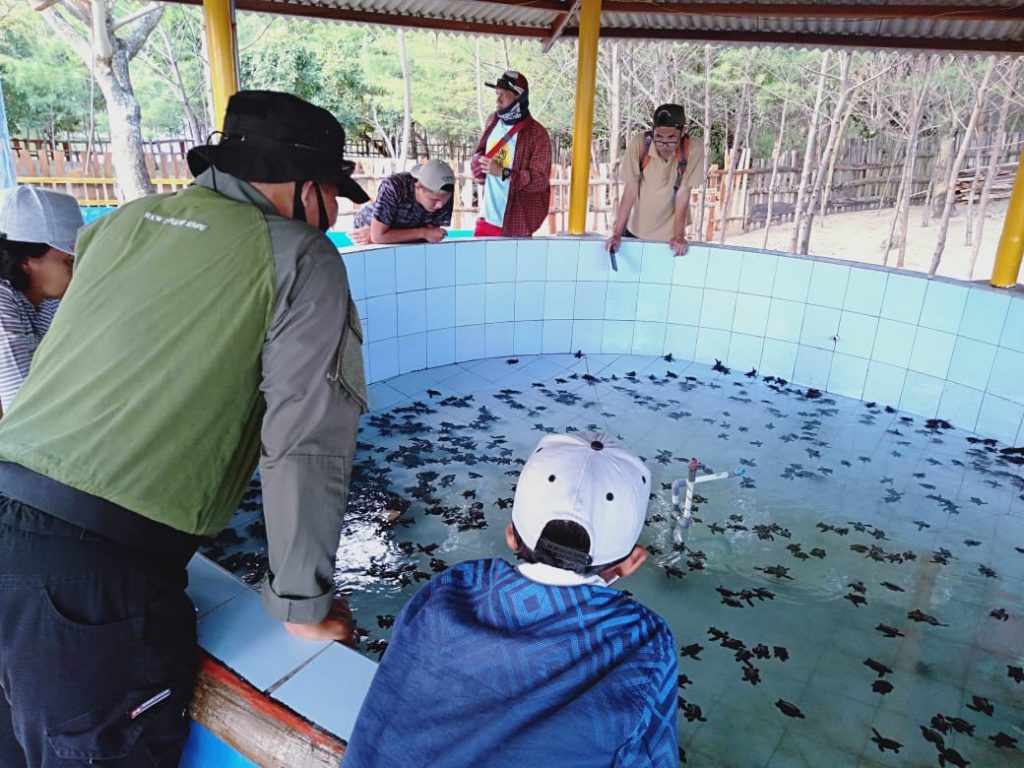Kegiatan pelepasliaran Tukik dilakukan, dengan tetap memperhatikan Protokol Kesehatan: Physical Distancing, menggunakan masker.